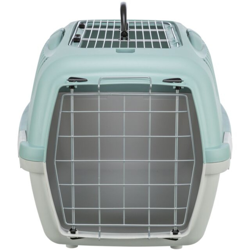 ar metāla režģi virsū ar metāla durvīm un rokturi atverams priekšpusē un augšpusē plastmasas Izmērs: S, 40 × 38 × 61 cm, līdz: 12 kg,