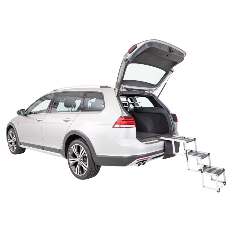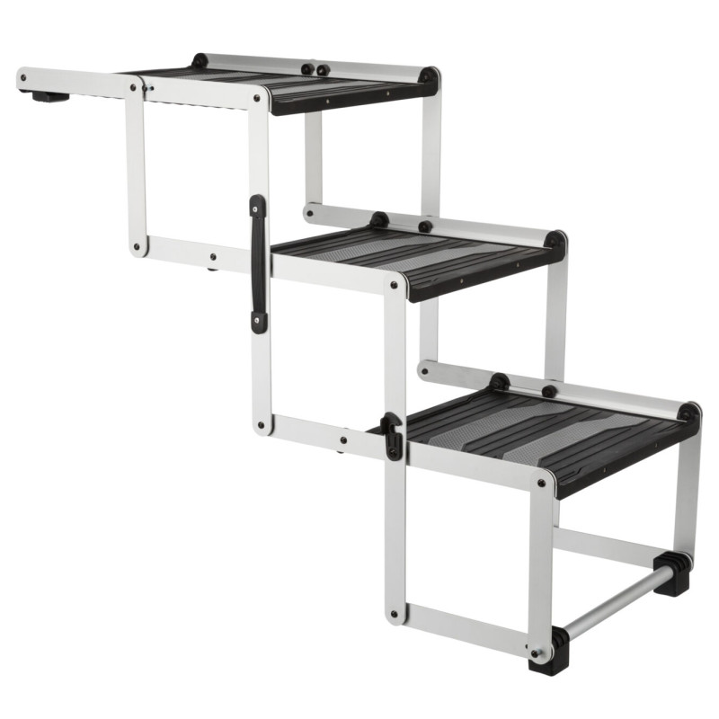 3-pakāpju saliekamās kāpnes Neslīdoša virsma pat mitros apstākļos Ērti lietojamas Vietu taupoša uzglabāšana Ietver bufera aizsardzību Regulējamas 2 pakāpju dziļumos Svars: 3,9 kg Alumīnijs / plastmasa / TPR Pārbaudītas neatkarīgā ekspertu institūcijā dzīvnieku labturības un aizsardzības jomā