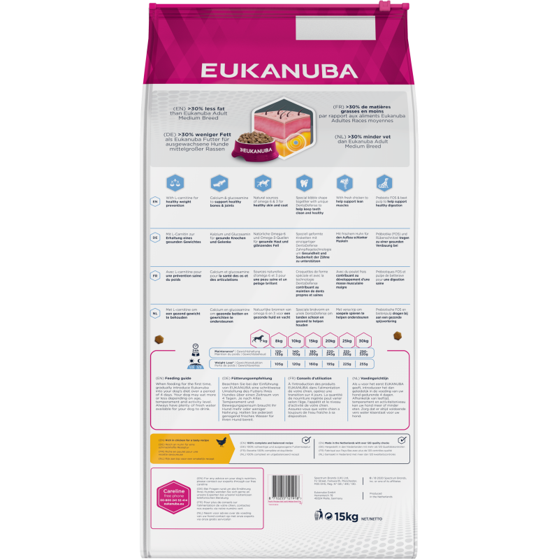 Eukanuba Adult Medium Light Chicken - vidējo šķirņu suņiem ar tendenci uz lieko svaru.