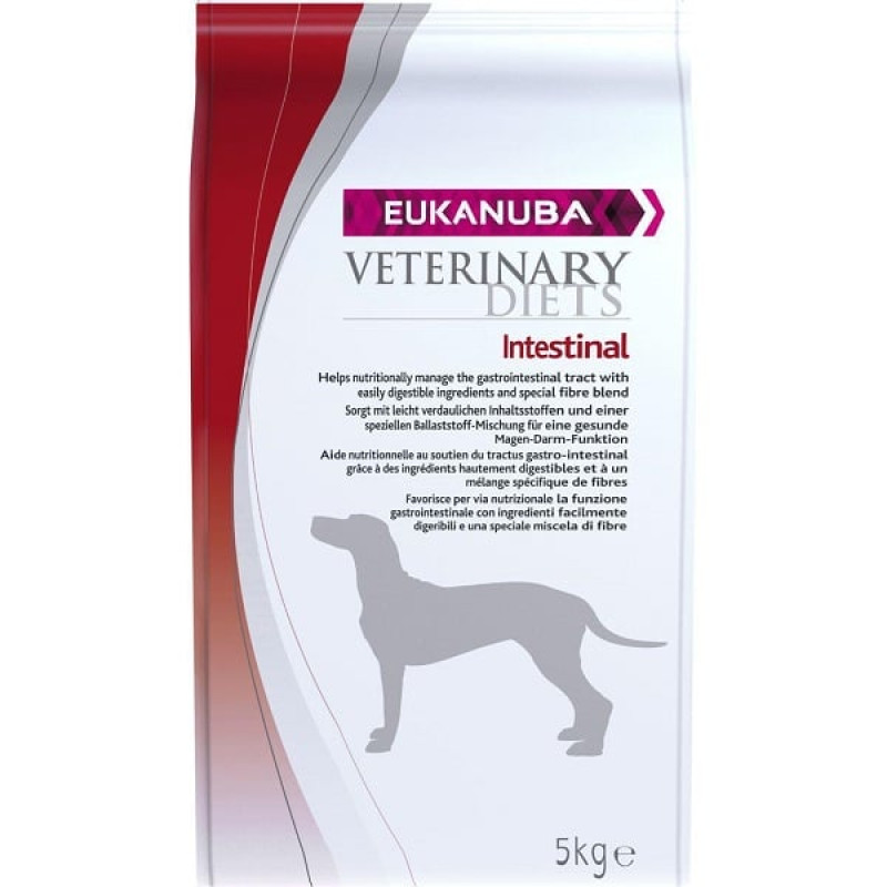 Barība suņiem — Eukanuba Veterinary Diets Intestinal Formula for Dogs - sausa barība suņiem gremošanas traucējumu gadījumos Pilnvērtīga, sabalansēta, sausā, diētiskā barība suņiem, kuru lieto gremošanas orgānu traucējumu gadījumos. Izstrādāts lai kompensētu gremošanas traucējumus, samazinātu uzsūkšanas procesus zarnu traktā atveseļošanas periodā, pēc akūtas diarejas, kā arī lai regulētu tauku vielmaiņu hiperlipidemijas gadījumā. Barība Intestinal satur viegli sagremojamas sastāvdaļas ar paaugstinātu elektrolītu un neaizvietojamo taukskābju koncentrāciju, kā arī zemu tauku koncentrāciju. Barības sastāvā ietilpst dabīgās kokšķiedras kombinācija, tai skaitā cukurbiešu pulpa un prebiotiķi FOS un MOS. Šī kombinācija palīdz uzturēt zarnu traktā dabīgo mikrofloras līdzsvaru un optimizēt barības vielu uzsūkšanos. Indikācijas: - Akūts un hronisks gastroenterīts; - Tievo un resno zarnu diareja; - Eksokrīnā aizkuņģa dziedzera nepietiekamība; - Kolīts; - Malabsorbcija / nepietiekama gremošana; - Zarnu iekaisuma slimības; - Pankreatīts; - Aizcietējums; - Caureja kā reakcija pret antibiotikām; - Juceklis pārtikā. Var lietot, kā diētisku produktu gadījumos: - Rehabilitācijas periodā pēc ķirurģiskām zarnu operācijām; - Pēc smagas parazitāras invāzijas; - Onkoloģiskas saslimšanas; - Kuņģa samešanās un uzpūšanās; - Parvovīrusa enterīts. Kontrindikācijas: Netiek rekomendēts: augošiem, grūsniem un laktējošiem suņiem. Sastāvs: kukurūzas putraimi, vistas un tītara gaļa, kukurūza, rīsi, kaltētas olas, sausie cukurbiešu graizījumi (3,3%), vistas gaļas ekstrakts, dzīvnieku tauki, augļu oligosaharīdi (1.0%), presēts alus raugs, kalija hlorīds, linsēklas, nātrija heksametafosfāts, kalcija karbonāts, zivju eļļa, mannanoligosaharīdi (0.19%), nātrija hlorīds. Analītiskie komponenti: kopproteīns - 23,0%, koptauki - 10,0%, Omega 6 taukskābes - 1,75%, Omega 3 taukskābes – 0.3%, koppelni – 6,0%, kopšķiedra - 1,7%, mitrums - 8,0%, kalcijs – 1,05%, fosfors - 0,8%, kalijs 0.82%, nātrijs 0.42%. Piedevas: uzturfizioloģiskās piedevas: Vitamīni: vitamīns A (E672) - 12500 IU/kg, vitamīns D3(E671) - 900 IU/kg, vitamīns E (alfatokoferols) - 200 mg/kg. Mikroelementi:Fe(E1):202mg/kg, Zn(E6):169mg/kg, Mn(E5):22mg/kg, Cu(E4):13mg/kg, I(E2):3mg/kg, Co(E3):0.4mg/kg. Enerģētiskā vērtība: 3978 kcal/kg. Nesatur mākslīgas krāsvielas, garšvielas un konservantus. Barošanas rekomendācijas: pirms lietošanas ieteicams konsultēties ar veterinārārstu. Veterinārārsts var dot specifiskās barošanas rekomendācijas, balstoties uz Jūsu dzīvnieka veselības stāvokli, vai ieteikt standarta barošanas normas, kas ir noradītas uz iepakojuma. Rekomendējamais lietošanas laiks: traucētas gremošanas kompensācija: 3-12 nedēļās, bet visas dzīves laikā, aizkuņģa dziedzera hroniskas nepietiekamības gadījumā; akūtu uzsūkšanās traucējumu mazināšana zarnu traktā: 1-2 nedēļas; lipīdu vielmaiņas regulācija: sākumā līdz 2 mēnešiem. Vienmēr nodrošiniet dzīvnieku ar svaigu dzeramo ūdeni. Uzglabāt aizvērtā veidā, sausā, vēsā vietā. Ražotājs: Eukanuba, Nīderlande