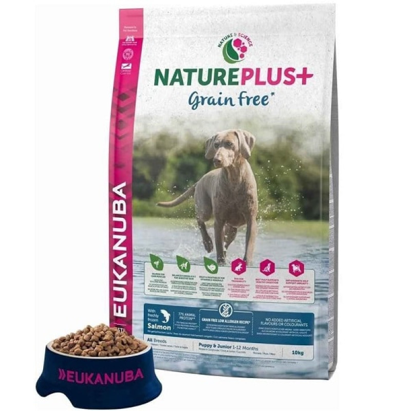 Sausa barība kucēniem : Eukanuba NATURE PLUS GRAIN FREE PUPPY & JUNIOR SALMON, 10 kg
