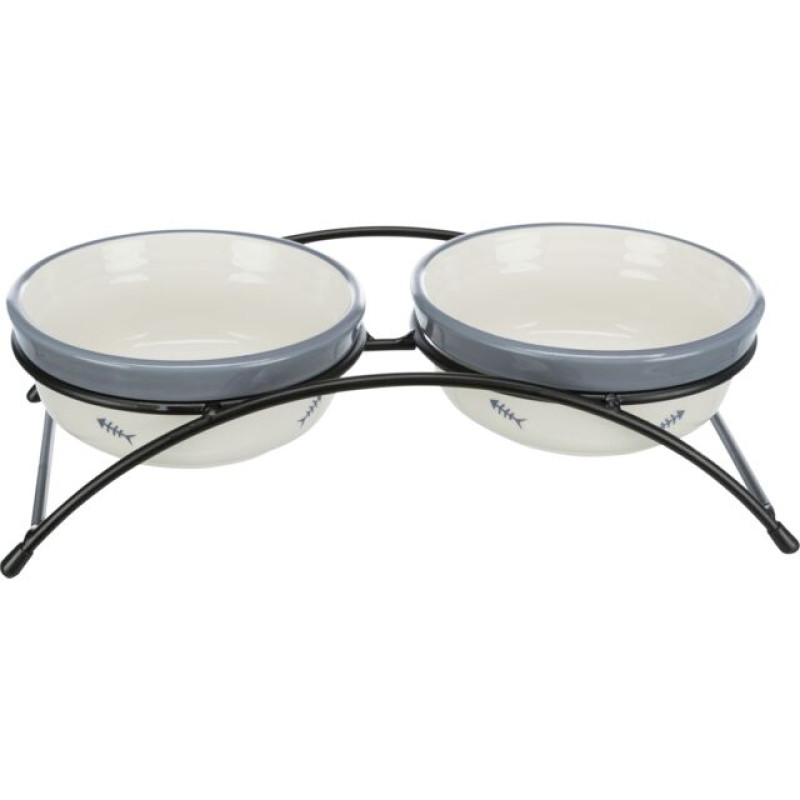 Keramiskās bļodas un metāla paliktnis ar neslīdošām gumijas kājām. Neslīdošs statīvs palīdzēs jums uzturēt kārtību mājās un jūsu mājdzīvniekam būs īpaši ērti ēst, jo bļodas statīvs neslīd. Bļodas ideāli der gan ūdenim, gan barībai, var mazgāt trauku mazgājamā mašīnā.
