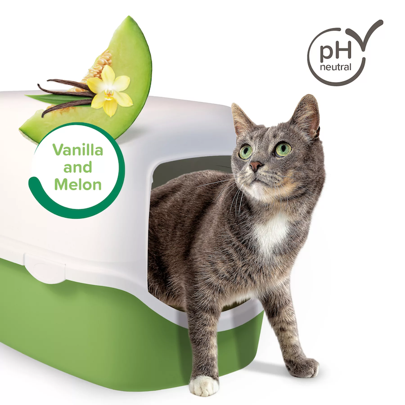 Beaphar Multi Fresh smaku neitralizētājs ar vaniļas un melones aromātu. Dezodorējošs pulveris, kas nekavējoties absorbē nepatīkamas smakas un mitrumu, atstājot patīkamu, maigu vaniļas un melones aromātu, kas netraucē pat jutīgām kaķēm. Produkts ir bioloģiski noārdāms, saudzīgs un pilnībā drošs visiem kaķiem. Pietiek to vienmērīgi uzbērt uz kaķu tualetes apakšas vai uz pakaišu virsmas un ļaut iedarboties. Īpašās granulas nekavējoties noslēdz urīnu iekšpusē un novērš smaku izplatīšanos. Pulveris uztur pakaišus higiēniskus un tīrus ilgāku laiku. Pagarina pakaišu lietošanas laiku līdz pat divām reizēm. Satur tikai nelielu daudzumu maiga aromāta, kas kaķiem netraucē. Saudzīgs dzīvnieku jutīgajai ožai. Bioloģiski noārdāms un drošs kaķiem. Nodrošina ilgstošu svaigumu bez biežas pakaišu maiņas. Kā lietot dezodorējošo pulveri? Multi Fresh smaku neitralizētājs ir unikāls produkts ar inovatīvu sastāvu kaķu urīna smaku likvidēšanai. Patīkams dezodorants, enzīmu (ureāzes) bloķētājs un labvēlīgi mikroorganismi. Produktam ir neitrāls pH un tas ir pilnībā drošs. Kaķu tualete iegūst patīkamu aromātu. Smaka tiek ne tikai absorbēta, bet pilnībā neitralizēts tās rašanās cēlonis. Likvidē pat pirmās urīna smakas pazīmes. Noārda visas urīna sastāvdaļas līdz oglekļa dioksīdam un ūdenim. Produkts ir pilnībā bioloģiski noārdāms. Smaku neitralizētāju var lietot divos veidos – uzbērt to uz tualetes apakšas un pēc tam pievienot pakaišus vai izkaisīt uz tīras pakaišu virsmas. Produkts ir vienlīdz efektīvs visiem pakaišu veidiem (kunkuļojošiem, absorbējošiem un koka pakaišiem). Lai sasniegtu vislabākos rezultātus, pulveri ieteicams periodiski pievienot, lai tas vienmērīgi sajauktos ar visu tualetes saturu un ilgstoši uzturētu svaigumu. Mājsaimniecībās ar vienu kaķi viena lietošana parasti nodrošina svaigus pakaišus bez smakas apmēram vienu nedēļu. Mājsaimniecībās ar vairākiem kaķiem dezodorantu ieteicams lietot vairākas reizes nedēļā vai pilnībā iztīrīt tualeti un nomainīt pakaišus.