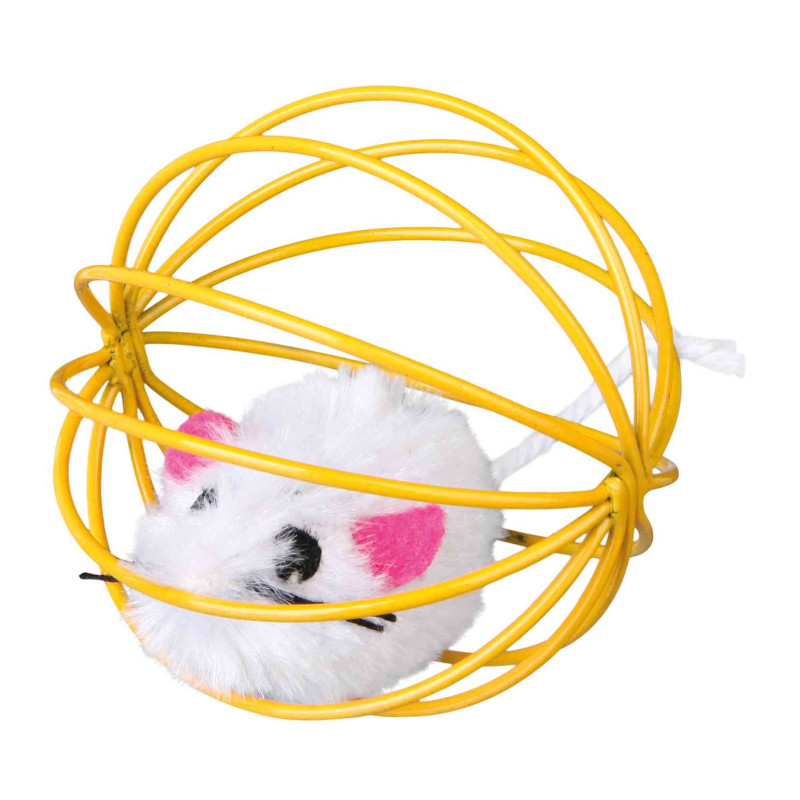Rotaļlieta kaķiem - Trixie Plush Mice in a Wire Ball 6cm Flīša pele ar zvaniņu cilindrā. Rotaļlietu ērti nest zobos.