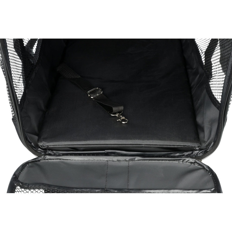 Noņemama regulējama plecu siksna, iekšpusē īsa pavada dzīvnieka fiksācijai.