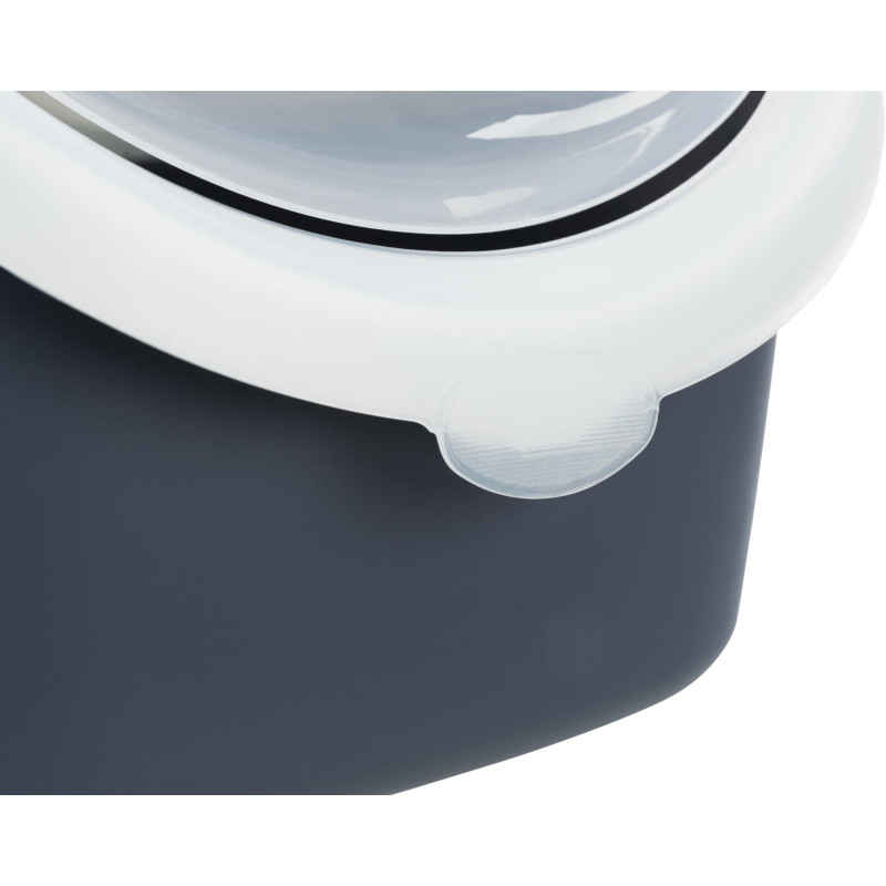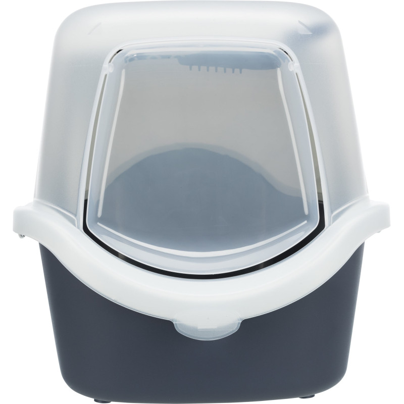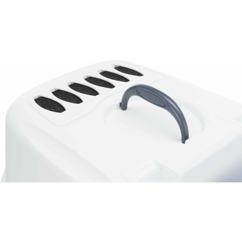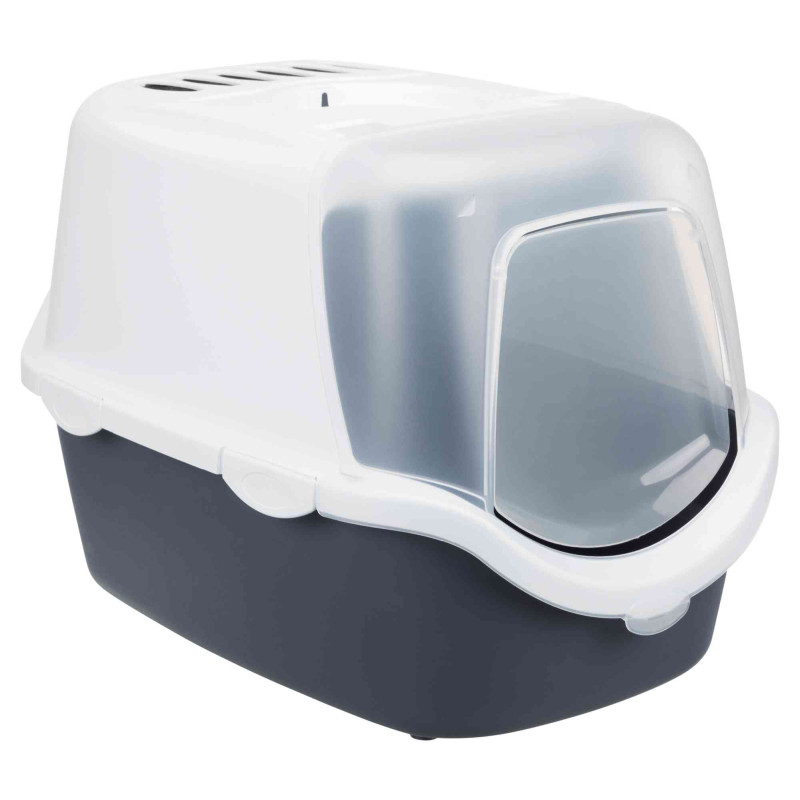 Tualete kaķiem -Trixie Vico Easy Clean Litter Tray. Plastmasas tualete ar vāku un durvīm. Plaša tualete ar lielu apakšējo daļu un sistēmu, kura novērš urīna noplūdi starp augšējo un apakšējo daļu. Viegli atveramas durtiņas. Tualetei ir nomaināms ogles filtrs, kas aiztur un samazina smakas. Izmēri: 40*40*56 cm. Krāsa: pelēka/balta.
