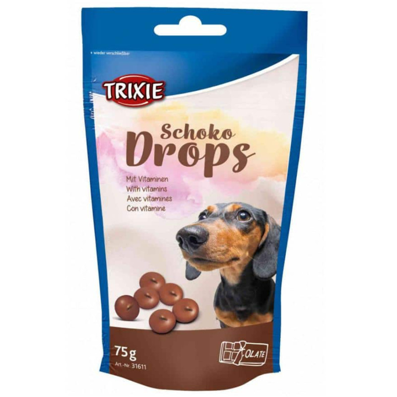 Jūsu iepirkumu grozs ir tukšs! Gardums suņiem - Trixie Chocolate Drops Dražejas ar šokolādes garšu. Sastāvs: Piens un piena produkti, eļļas un tauki, augu valsts blakus produkti, kakao (3%), graudi. Analītiskais sastāvs: koptauki 22.0%, kopproteīns 7.0%, pelni 4.0%, šķiedrvielas 1.8%. Lietošana: dienā pa 3 - 10 gab. atkarībā no suņa lieluma.