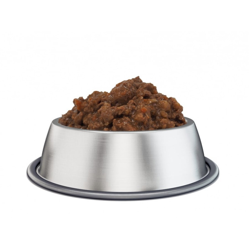Sastāvs: vistas gaļa 62 %, buljons 18 %, mīkstināti vistu kauli 10 %,  kartupeļi 4 %, zirņi 3 %, burkāni 3 %. Analītiskais sastāvs: Kopproteīns 10 %, koptauki 3 %, kopšķiedra 2 %, koppelni 1 %, mitrums 83 %. Piedevas uz kg: D3 vitamīns 200 SV, E vitamīns 100 mg, cinks (cinka sulfāta monohidrāts): 10 mg, mangāns (mangāna oksīds): 2 mg,  magnijs (magnija glikonāts): 1,5 mg, varš (vara sulfāta pentahidrāts): 1,2 mg, jods (bezūdens kalcija jodāts): 0,2 mg, biotīns 100 µg.