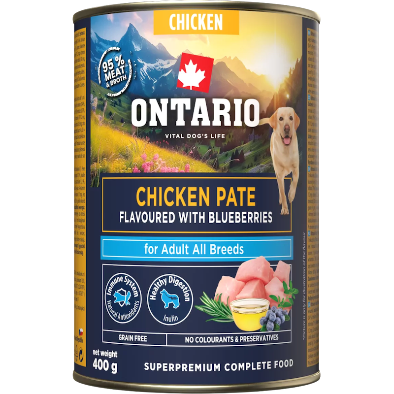 Konservi suņiem - Ontario Adult Chicken Pate with Blueberry Flavor 400g