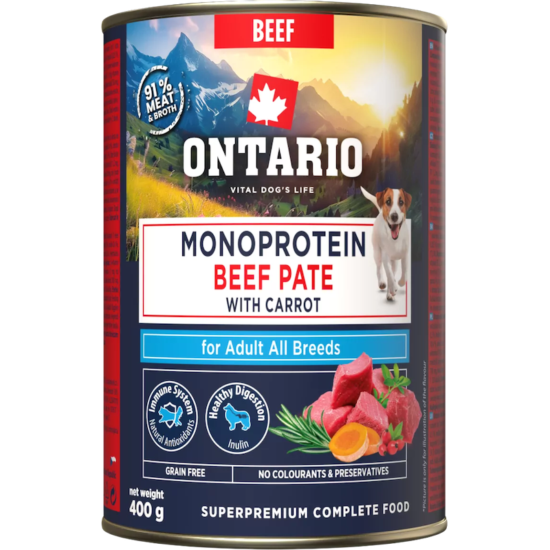 Konservi suņiem - Ontario Adult Monoprotein Beef Pāté with Carrots 400g