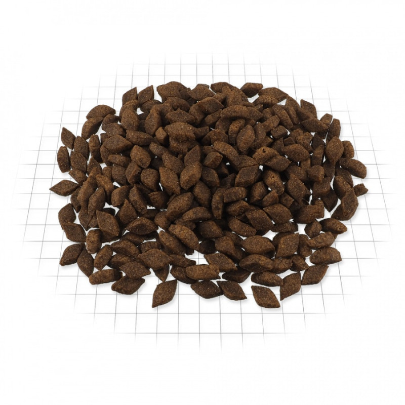 Sastāvs: Žāvētas jūras zivis (siļķes, brētliņas, moivas, sardīnes, mencas) (25 %), rīsi (24 %), zirņi, žāvēts lasis (11 %), vistas tauki, žāvēti āboli, alus raugs, zivju eļļa, kaltēti burkāni, mananoligosaharīdi (180 mg/kg), fruktooligosaharīdi (120 mg/kg), jūras aļģes, fenhelis, timiāns, kanēlis, anīss, krustnagliņas, rozmarīns un juka (120 mg/kg). Analītiskais sastāvs: Kopproteīns 27 %, tauki 16 %, mitrums 10 %, koppelni 6,5 %, kopšķiedra 2,5 %, kalcijs 1,1 %, fosfors 0,9 %, nātrijs 0,6 %, magnijs 0,09 %. Uzturfizioloģiskās piedevas uz 1 kg: A vitamīns (E672) 20000 SV, D3 vitamīns (E671) 1800 SV, E vitamīns (alfa-tokoferols) (3a700) 500 mg, B1 vitamīns 1,2 mg, B2 vitamīns 4,5 mg, B6 vitamīns (3a831) 1,2 mg, B12 vitamīns 0,05 mg, cinks (E6) 100 mg, dzelzs (E1) 88 mg, mangāns (E5) 42 mg, jods (E2) 0,8 mg, varš (E4) 18 mg, selēns (3b8.10) 0,25 mg, Omega-3 0,7%, Omega-6 2,0%, antioksidanti. Metabolizējamā enerģija: 3800 kcal/kg.