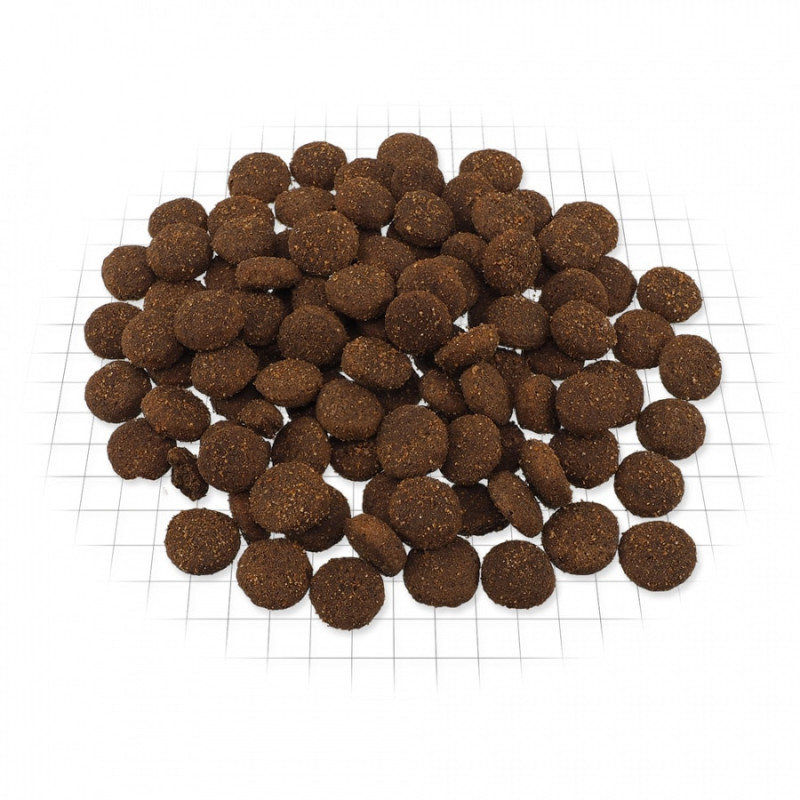 Sastāvs: Kaltēta vistas gaļa (30%), kartupeļu pārslas (25%), rīsi, žāvēti āboli, vistas tauki, hidrolizēti vistas proteīni (5%), alus raugs, zivju eļļa, kalēti burkāni, glikozamīna sulfāts (310mg/kg), hondroitīna sulfāts (190mg/kg),mannanoligosaharīdi (180 mg/kg), fruktoogligosaharīdi (120 mg/kg), jūras aļģes, fenhelis, timiāns, kanēlis, anīss, krustnagliņas, rozmarīns un juka (120mg/kg). Analītiskais sastāvs: Kopproteīns 26,0%, koptauki 14,0%, mitrums 10,0%, koppelni 6,2%, kopšķiedra 2,8%, kalcijs 1,4%, fosfors 1,1%, nātrijs 0,2%, magnijs 0,09%. Uzturfizioloģiskās piedevas uz 1 kg: vitamīns A (3a672a) 20.000SV, vitamīns D3 (E671) 1400 SV, vitamīns E (alfa-tokoferols) (3a700) 400 mg, vitamīns B1 (3a831) 1 mg, vitamīns B2 4 mg, vitamīns B6 (3a831) 1 mg, vitamīns B12 0,05 mg, cinks (E6) 90 mg, dzelzs (E1) 70 mg, mangāns (E5) 36 mg, jods (3b201) 0,7 mg, varš (E4) 16 mg, selēns (3b8.10) 0,25 mg, antioksidanti. Metabolizējamā enerģija: 3740 kcal/kg, Omega-3: 0,2%, Omega-6: 1,7%.