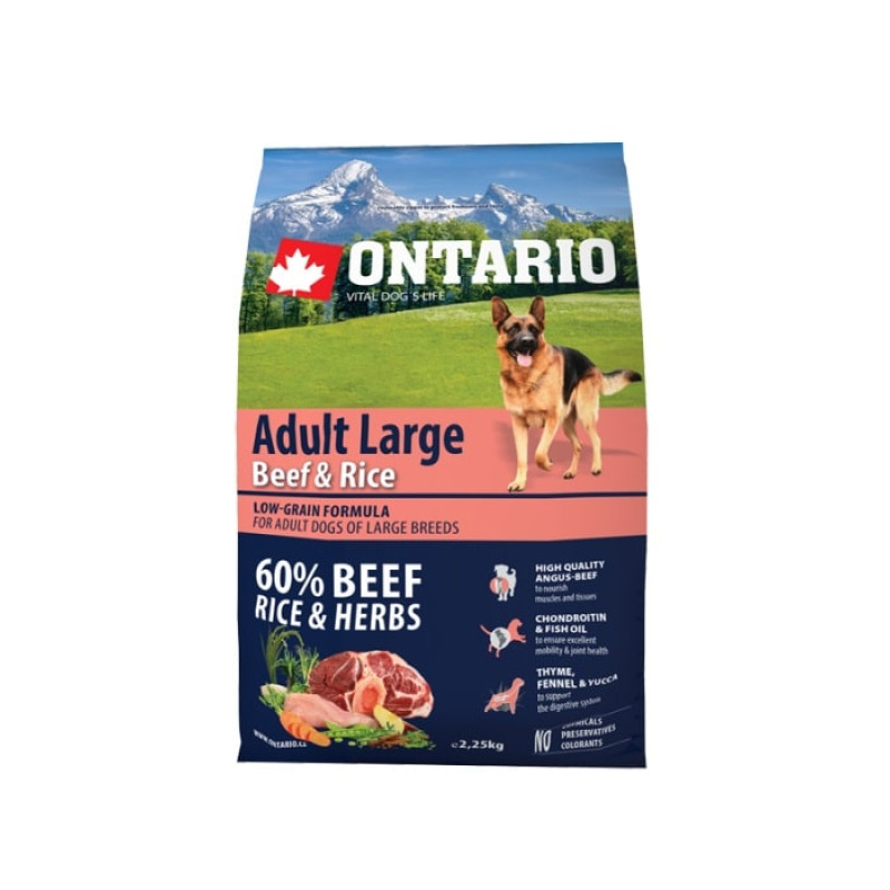 Sausa barība suņiem - Ontario Dog Adult Large Beef, Rice and Turkey, 2,25 kg