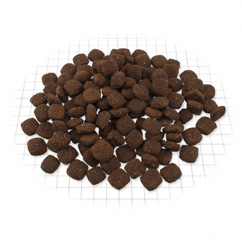 Sastāvs: Žāvēta liellopa gaļa (28%), rīsi (27%), zirņi, vistas tauki, žāvēta tītara gaļa (5%), žāvēti āboli, alus raugs, zivju eļļa, žāvēti burkāni, glikozamīna sulfāts (310 mg/kg), hondroitīna sulfāts (190 mg/kg), mananoligosaharīdi (180 mg/kg), fruktooligosaharīdi (120 mg/kg), jūras aļģu, fenheļa un timiāna maisījums, kanēlis, anīss, krustnagliņas, rozmarīns un juka (120 mg/kg). Analītiskais sastāvs: Kopproteīns 26,0%, koptauki 14,0%, mitrums 10,0%, koppelni 5,2%, kopšķiedra 2,5% kalcijs 1,4%, fosfors 1,1%, nātrijs 0,5%, magnijs 0,07%. Uzturfizioloģiskās piedevas uz 1 kg: vitamīns A (3a672a) 20 000 SV, vitamīns D3 (E671) 1800 SV, vitamīns E (alfa-tokoferols) (3a700) 500 mg, vitamīns B1 (3a831) 1,2 mg, vitamīns B2 4,5 mg, vitamīns B6 (3a831) 1,2 mg, vitamīns B12 0,05 mg, cinks (E6) 100 mg, dzelzs (E1) 88 mg, mangāns (E5) 42 mg, jods (3b201) 0,8 mg, varš (E4) 18 mg, selēns (3b8.10) 0,25 mg, antioksidanti.
