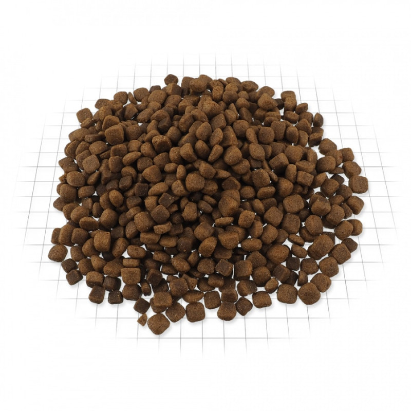 Sastāvs: Žāvētas jūras zivis (siļķes, brētliņas, ņurņiki, moivas, sardīnes, mencas) (24 %), rīsi (24 %), zirņi, žāvēts lasis (12 %), vistas tauki, žāvēti āboli,alus raugs, zivju eļļa, kaltēti burkāni, mannanoligosaharīdi (180 mg/kg), fruktoogligosaharīdi (120 mg/kg), jūras aļģes, fenhelis, timiāns, anīss, kanēlis, krustnagliņas, rozmarīns un juka (120mg/kg). Analītiskais sastāvs: Kopproteīns 27 %, tauki 14 %, mitrums 10 %, koppelni 6,5 %, kopšķiedra 2,5 %, kalcijs 1,2 %, fosfors 1 %, nātrijs 0,6 %, magnijs 0,09 %. Uzturfizioloģiskās piedevas uz 1 kg: A vitamīns (E672) 20000 SV, D3 vitamīns (E671) 1800 SV, E vitamīns (alfa-tokoferols) (3a700) 500 mg, B1 vitamīns 1,2 mg, B2 vitamīns 4,5 mg, B6 vitamīns (3a831) 1,2mg, B12 vitamīns 0,05 mg, cinks (E6) 100 mg, dzelzs (E1) 88 mg, mangāns (E5) 42 mg, jods (E2) 0,8 mg, varš (E4) 18 mg, selēns (3b8.10) 0,25 mg, antioksidanti.