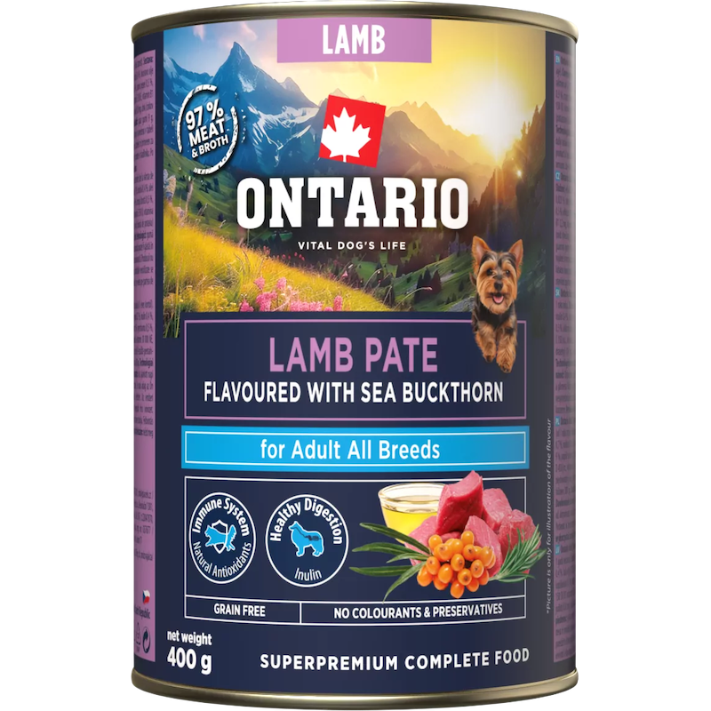 Konservi suņiem - Ontario Adult Lamb Pate with Sea Buckthorn Flavor 400g