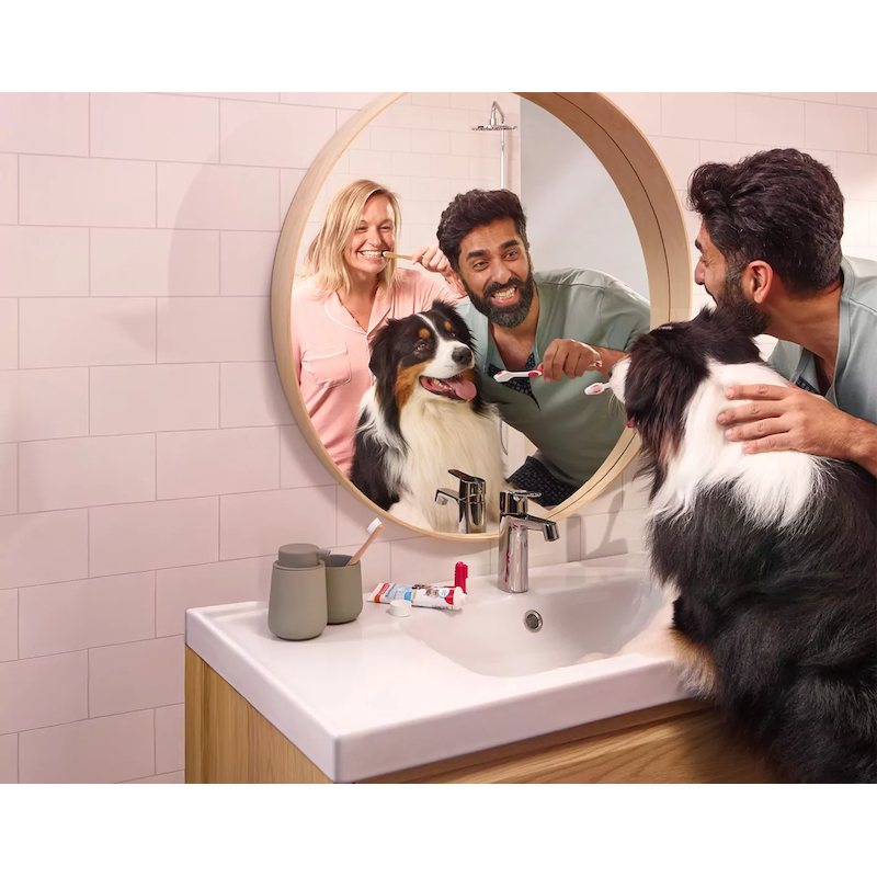 Zobu pastas komplekts ar birsti jūsu mīluļa veselīgam zobu stāvoklim Kombinācijā ar regulāru zobu tīrīšanu Beaphar zobu pasta palīdz samazināt zobu aplikuma un zobakmens veidošanos. Efektīvi palīdz cīnīties pret zobu aplikumu un zobakmeni. Pastai ir aknu garša. Zobu birste ir divpusēja un piemērota visu izmēru mutes dobumiem. Pasta satur fermentus un nesatur fluorīdus. Pateicoties šim komplektam, zobu tīrīšana kļūst vienkāršāka. Aknu garšas dēļ pasta ir patīkamāka suņiem un kaķiem, tāpēc tīrīšanas laikā nerada problēmas ar pieņemšanu. Beaphar zobu birstei ir mīksts ergonomisks rokturis un dažāda garuma sariņi, kas nodrošina dziļu tīrīšanu arī grūti pieejamās vietās. Lietošanas instrukcija Pirms lietošanas samitriniet zobu birsti. Pakāpeniski pieradiniet mīluli pie zobu tīrīšanas – vienmēr ar pacietību un mīlestību. Ļaujiet mīlulim pastu pasmaržot un pagaršot, pēc tam pakāpeniski turpiniet tīrīšanu. Skalošana nav nepieciešama. Labākiem rezultātiem tīriet zobus katru dienu. Specifikācija Uzglabāt istabas temperatūrā. Uzglabāt bērniem nepieejamā vietā. Tikai dzīvniekiem. Piemērots lietošanai no dzīvnieka 8 nedēļu vecuma. Sastāvs: Ūdens, glicerīns, hidrogenēts cietes hidrolizāts, silīcija dioksīds, nātrija heksametafosfāts, karbomērs, olu pulveris, cinka citrāts, nātrija hidroksīds, kālija sorbāts, nātrija benzoāts, aknu pulveris, propilēnglikols, nātrija hlorīds, subtilizīns, trinātrija citrāta dihidrāts, nātrija fosfāts, glikozes oksidāze.