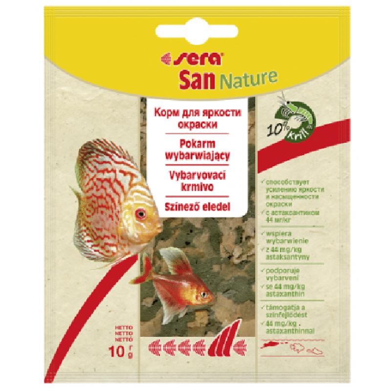 Barība zivīm - Sera San, 10 ml Pārslveida barība dekoratīvajām zivīm.